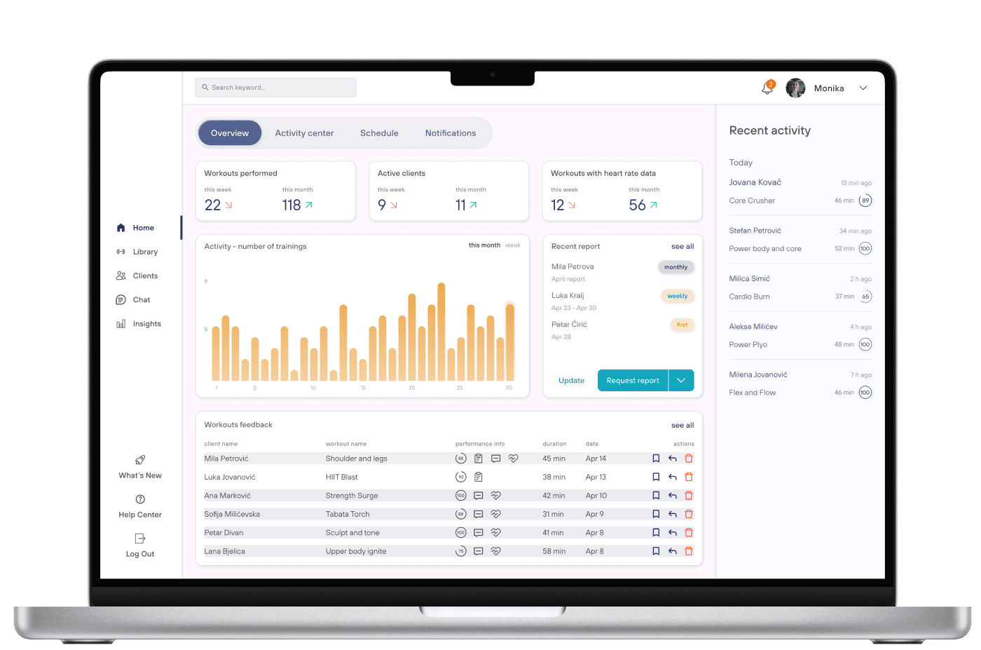 Desire easy access to their clients' training schedules and activity history.