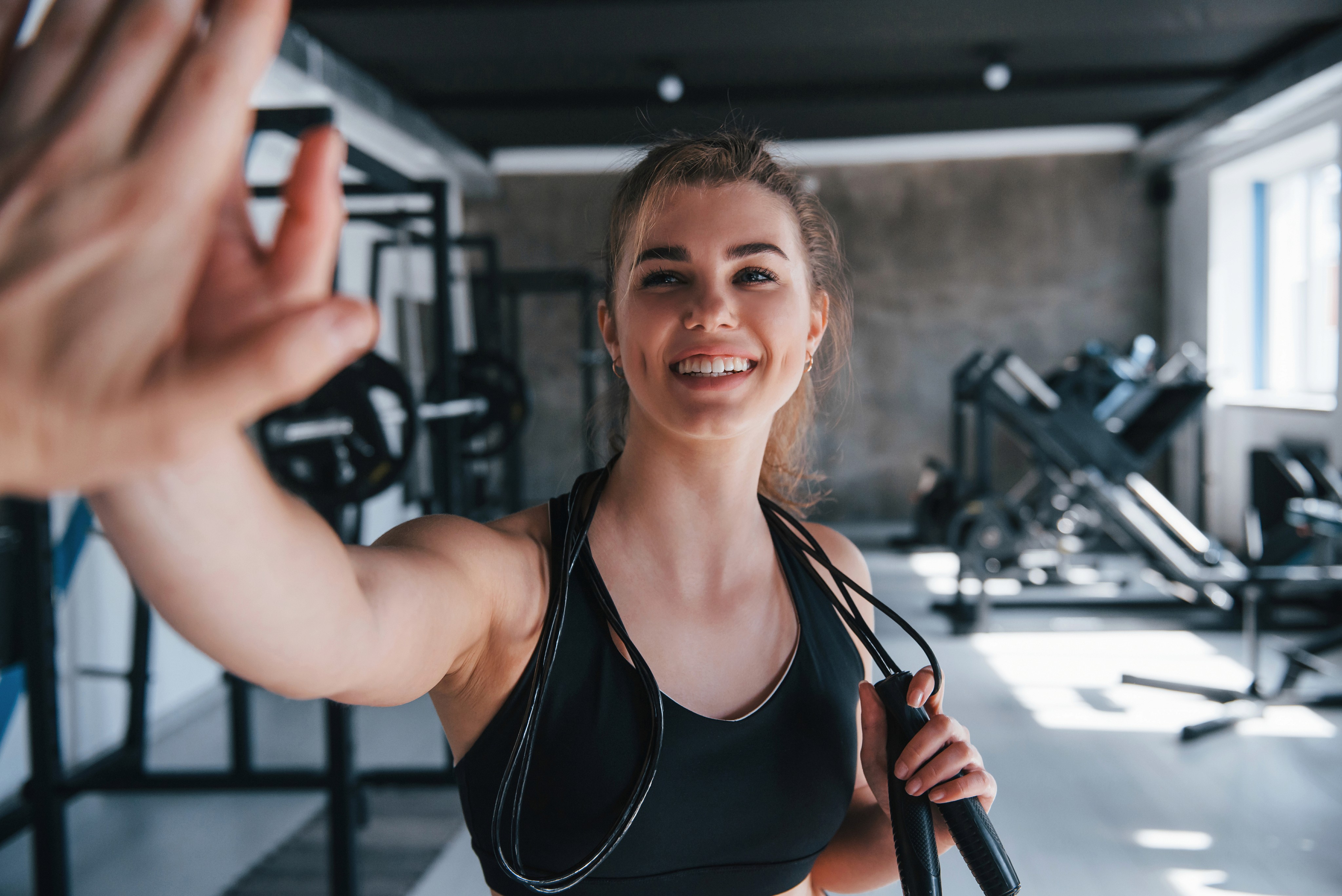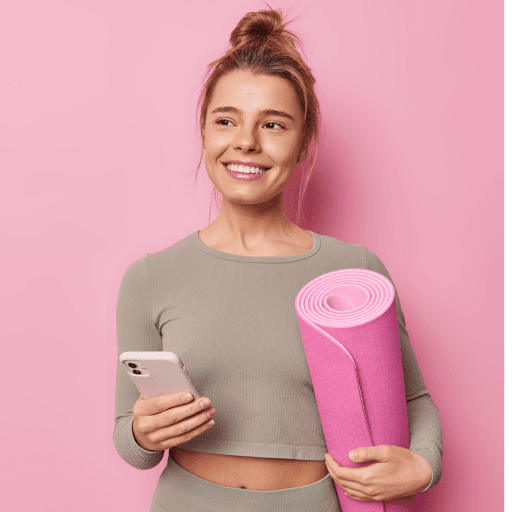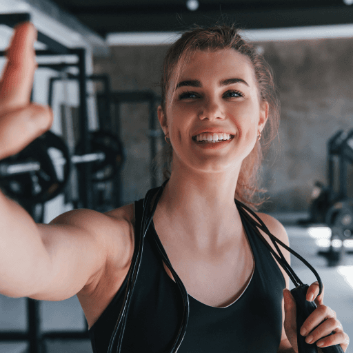 Celebrates milestones and achievements along her fitness journey, finding joy in each step of progress and using them as motivation to continue pushing herself.