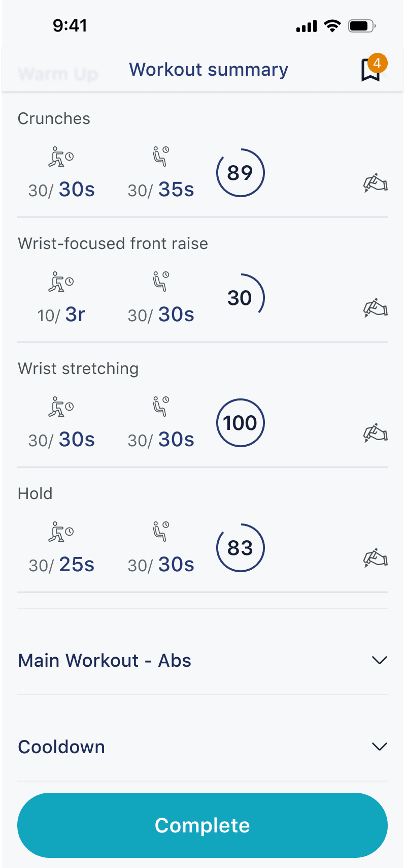 Start and Complete the Workout