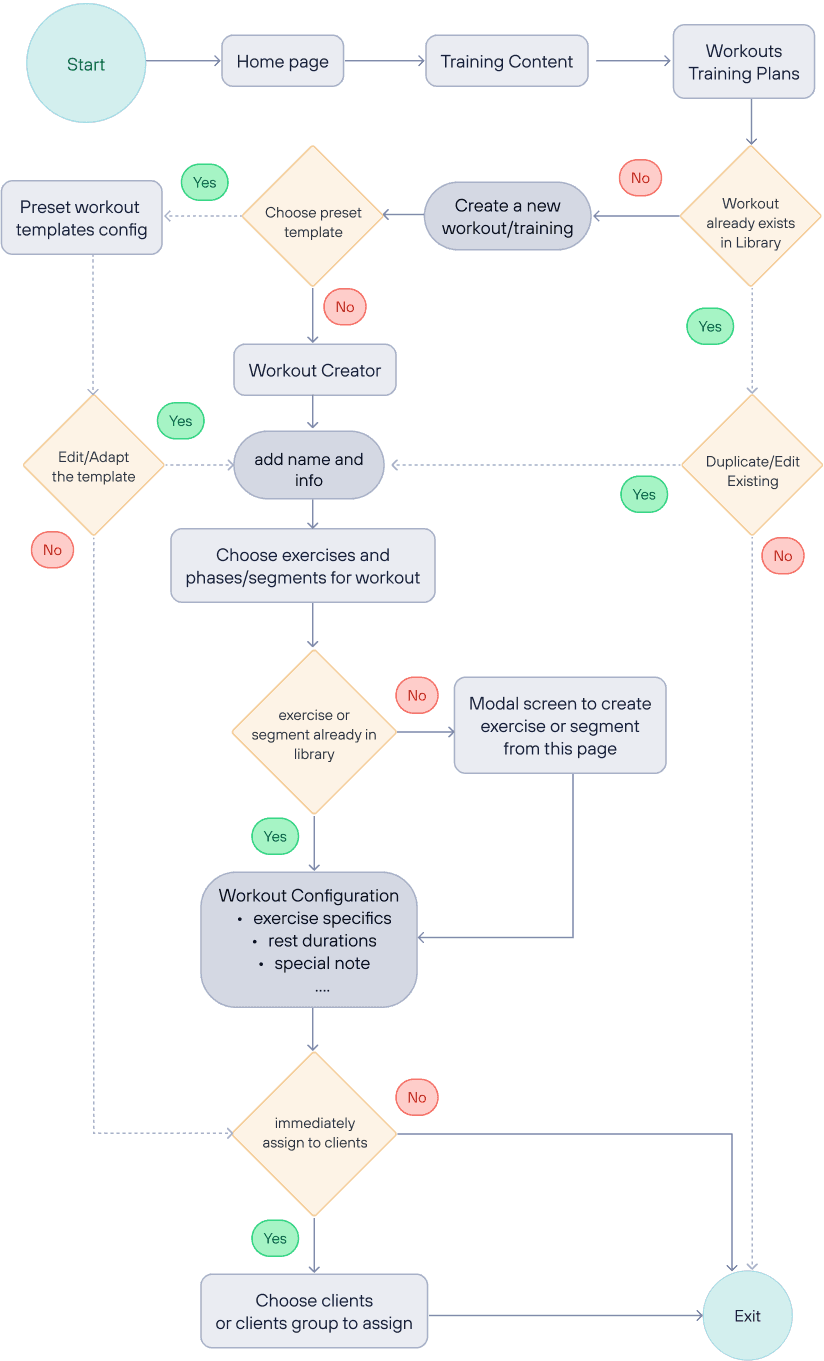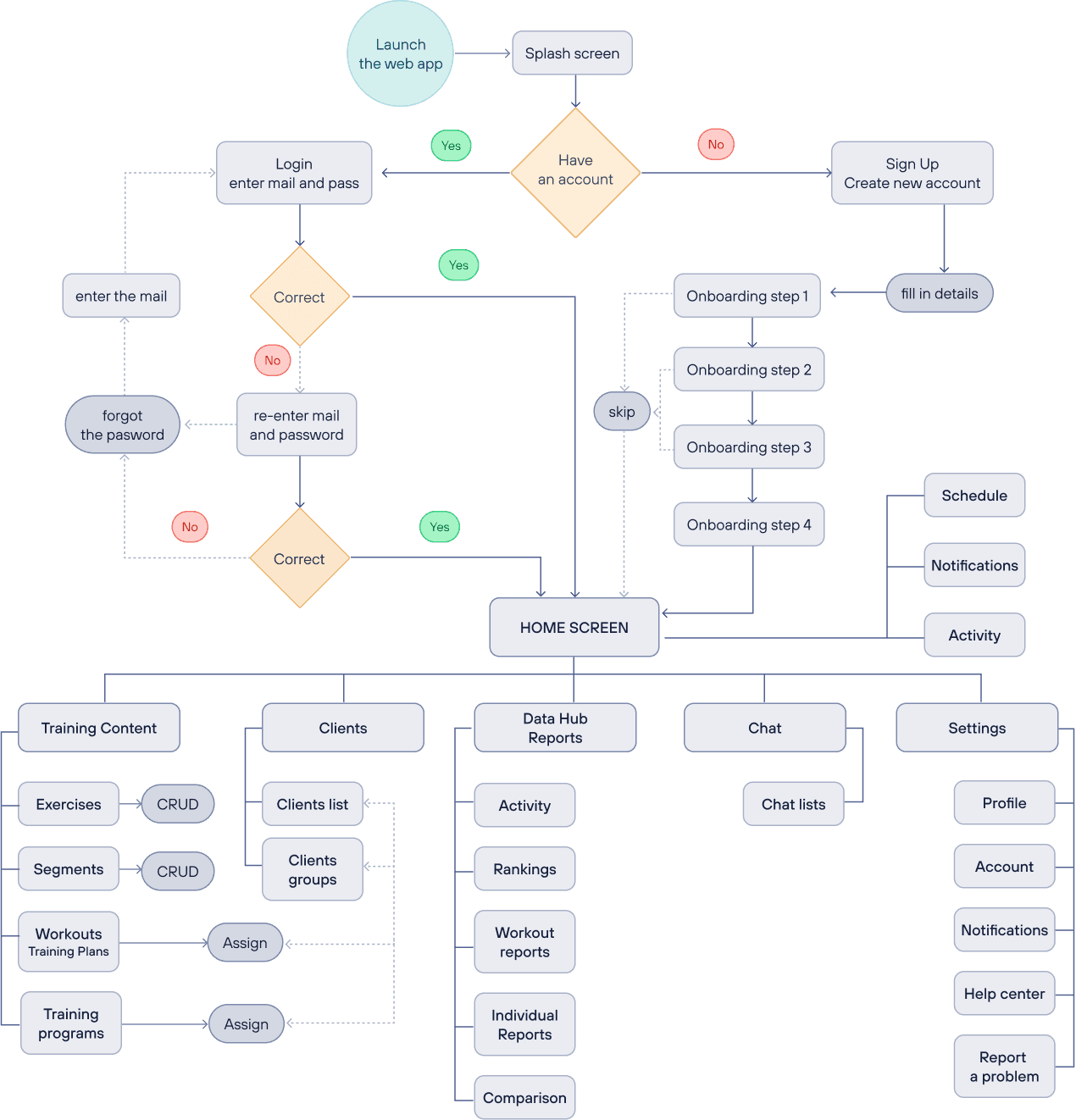 User Flow - Dashboard Web App for trainers
