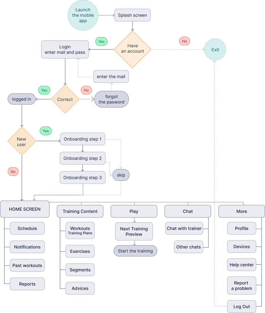 User Flow - Trainees’ mobile app
